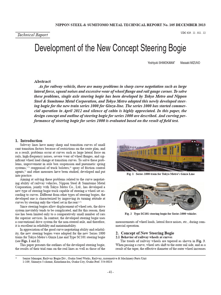 Since this indicates that steering bogies are also effective at reduc- 1) Tomeoka, Shikata, Kabe, Ubukata, Nakata, Sato, Shimokawa, Okamoto: