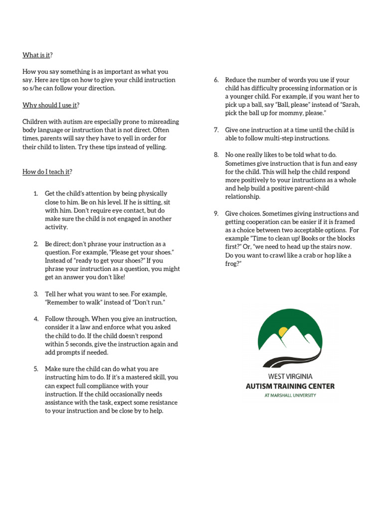 say. Here are tips on how to give your child instruction 6. Reduce the number of words you use if your