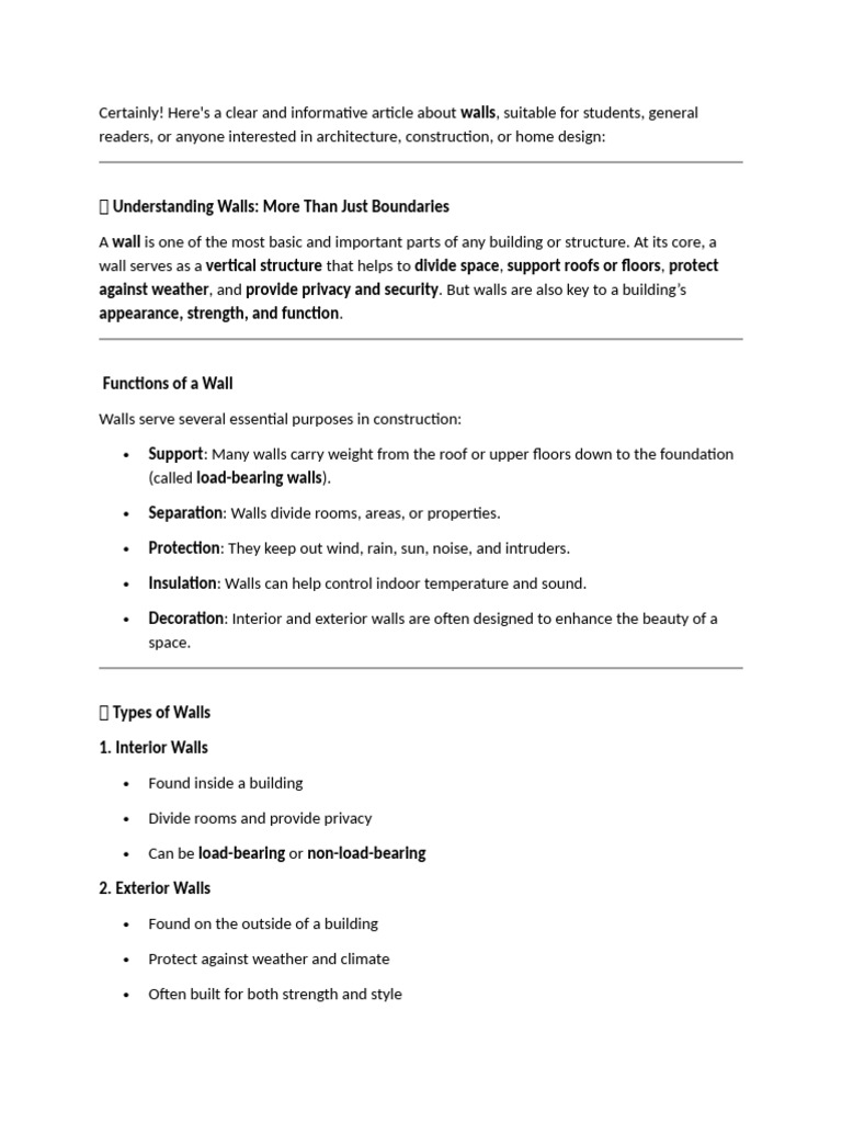 Here's a clear and informative article about walls, suitable for students, general