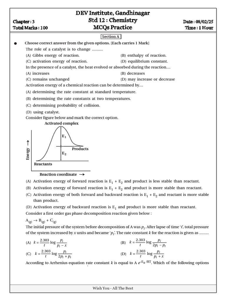 6. According to Arrhenius equation rate constant k is equal to A e–Ea /RT. Which of the following options
