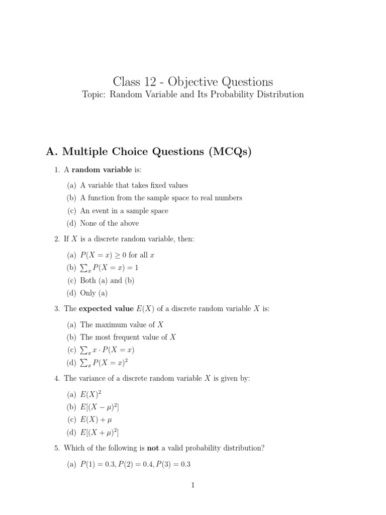 8. If a random variable X takes values 1, 2, 3 with probabilities 61 , 12 , 13 respectively, then