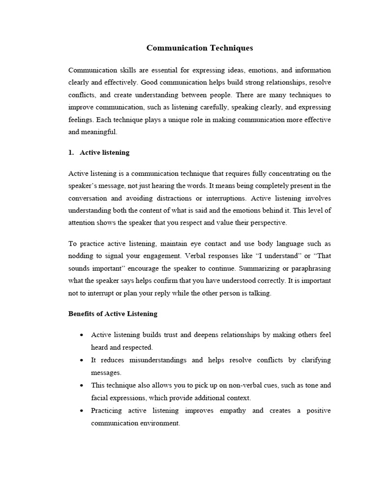 feelings. Each technique plays a unique role in making communication more effective