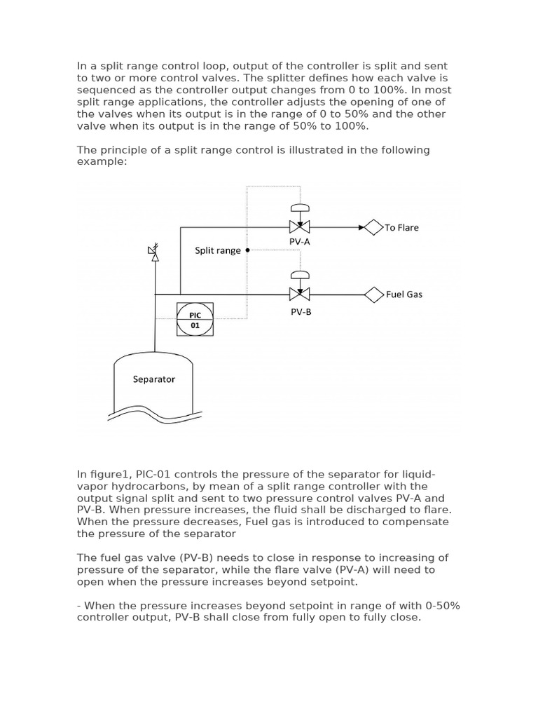 The principle of a split range control is illustrated in the following