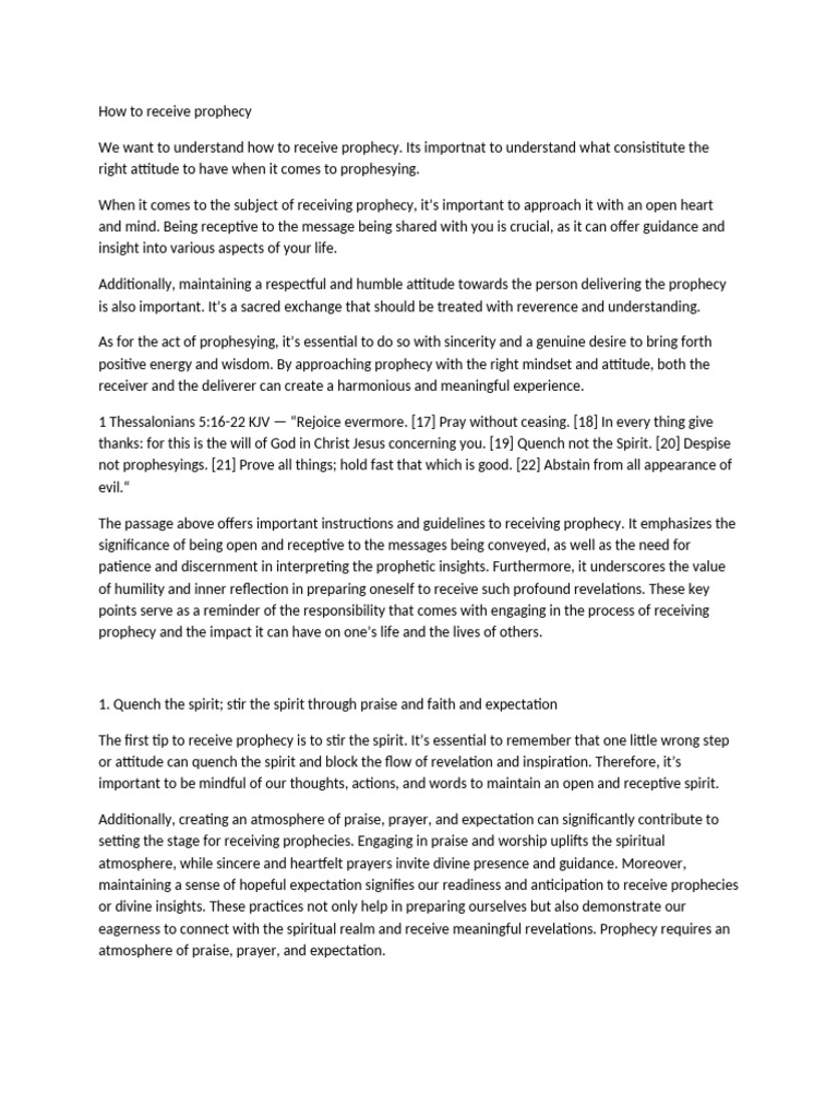 The passage above offers important instructions and guidelines to receiving prophecy. It emphasizes the