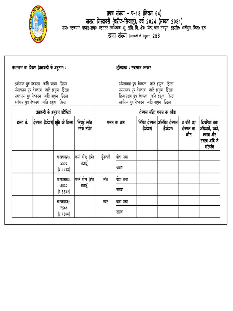 ;g izi= i&13 dh vkaf'kd udy gSA Department of Revenue udy tkjh djus dk le; ,oa fnukad % 11/06/2025 12:43:12