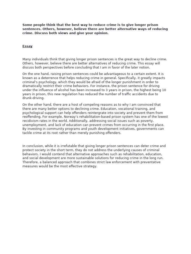 Others, however, believe there are better alternatives of reducing crime. This essay will
