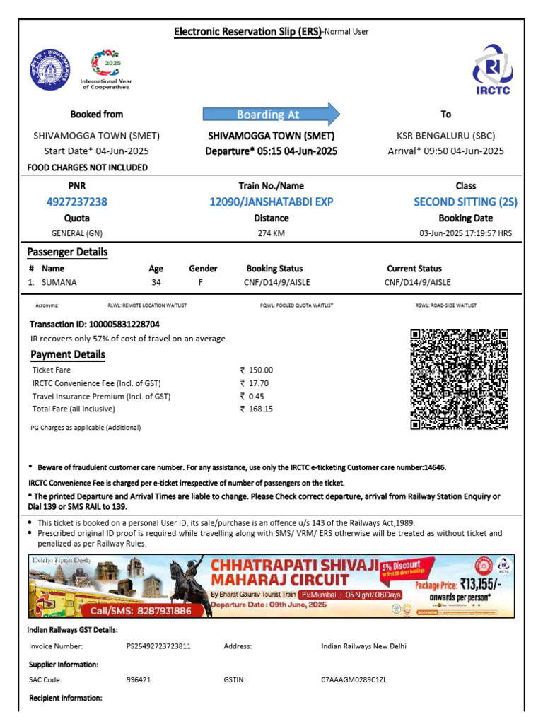 Invoice Number: PS25492723723811 Address: Indian Railways New Delhi