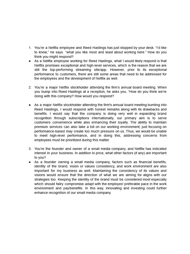 ● As a Netflix employee working for Reed Hastings, what I would likely respond is that
