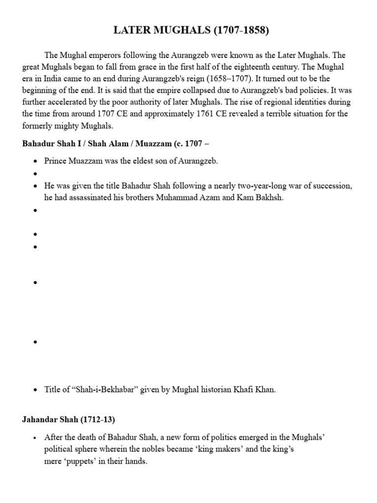 The Mughal emperors following the Aurangzeb were known as the Later Mughals. The