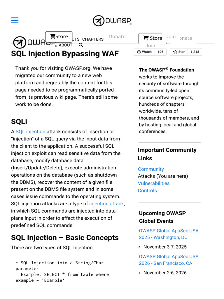 SQL Injection Bypassing WAF Watch 196 Star 1,218