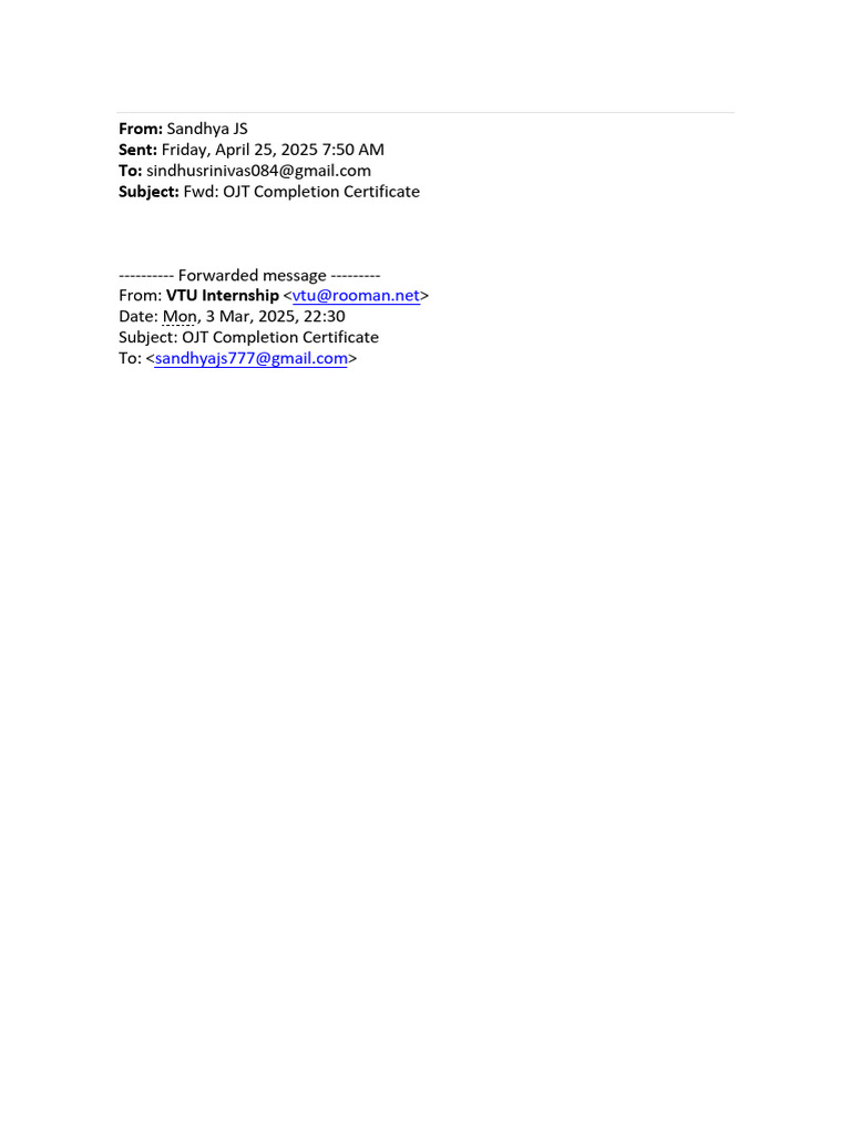 Srinivas k has successfully completed the On-the-Job training (OJT) for