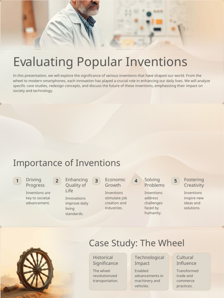 In this presentation, we will explore the significance of various inventions that have shaped our world. From the