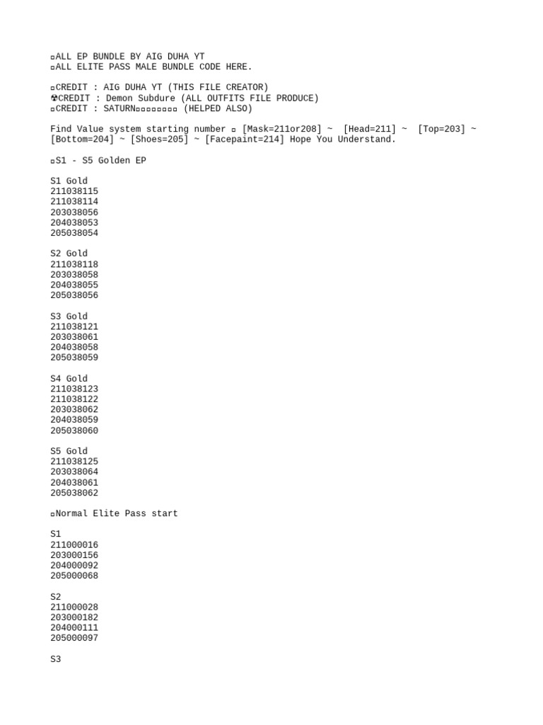 👉ALL ELITE PASS MALE BUNDLE CODE HERE.