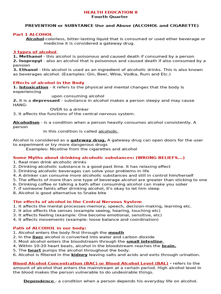 PREVENTION or SUBSTANCE Use and Abuse (ALCOHOL and CIGARETTE)