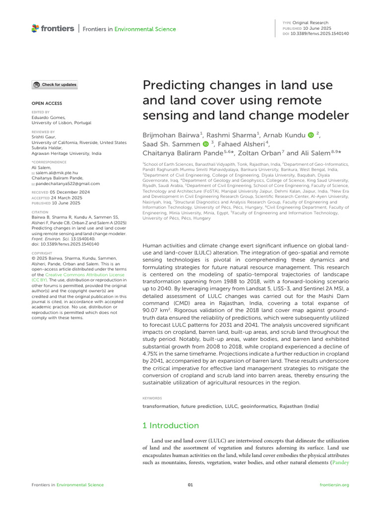 Pradesh. Pradesh J. Environ. Stud. Sci. 13, 124–140. doi:10.1007/s13412-022-00805-6 957–988. doi:10.1080/10106049.2019.1629647