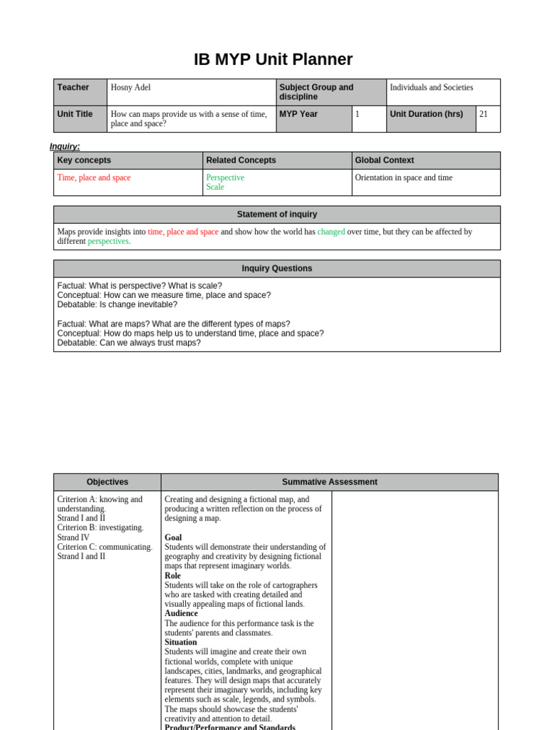 IB MYP Unit Planner