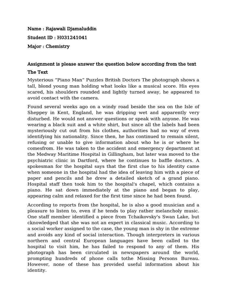 Mysterious “Piano Man” Puzzles British Doctors The photograph shows a