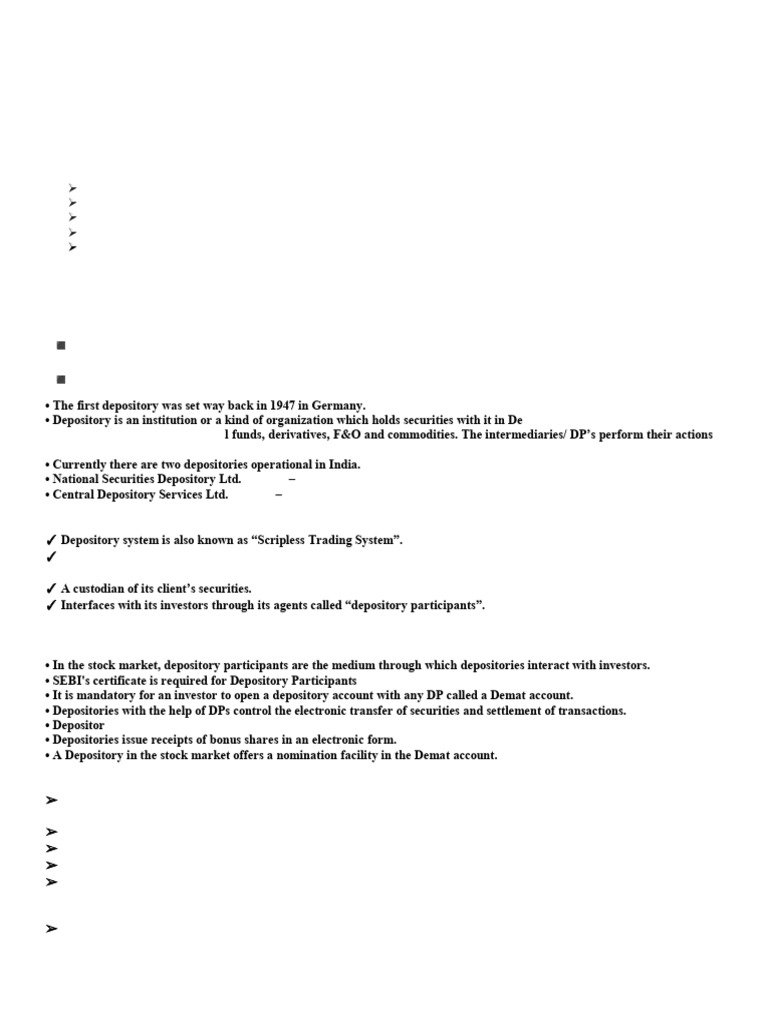 • Depositories with the help of DPs control the electronic transfer of securities and settlement of transactions.