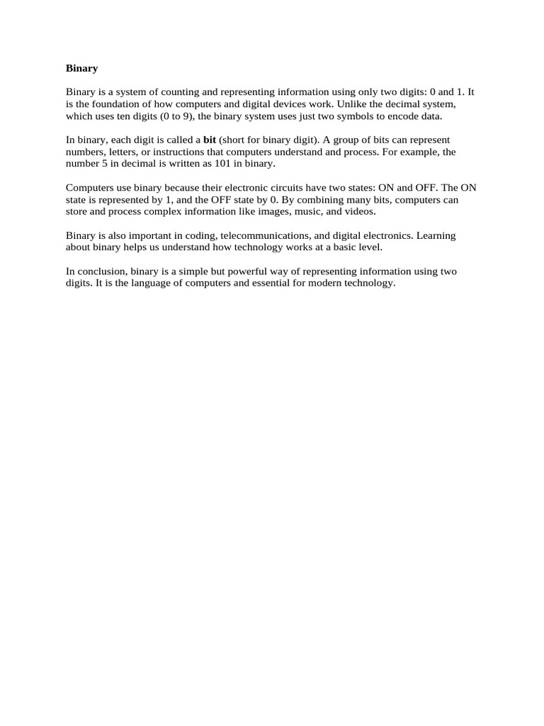 digits. It is the language of computers and essential for modern technology.