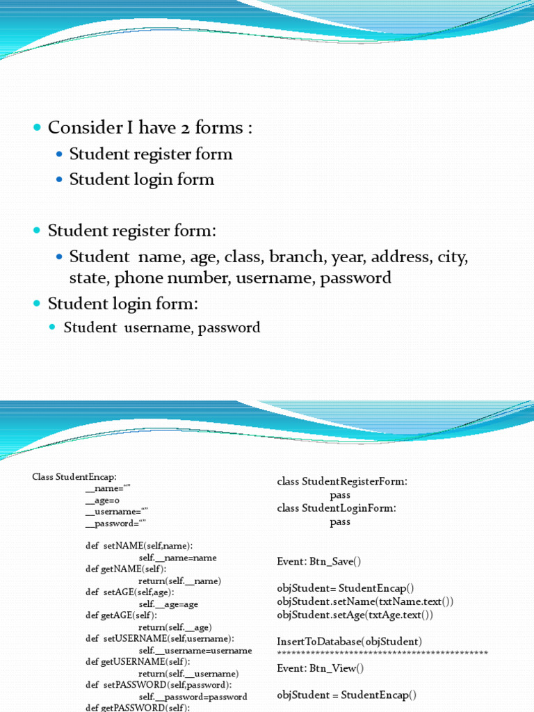 return(self.__password) objStudent=GetDetailsFromDatabase()