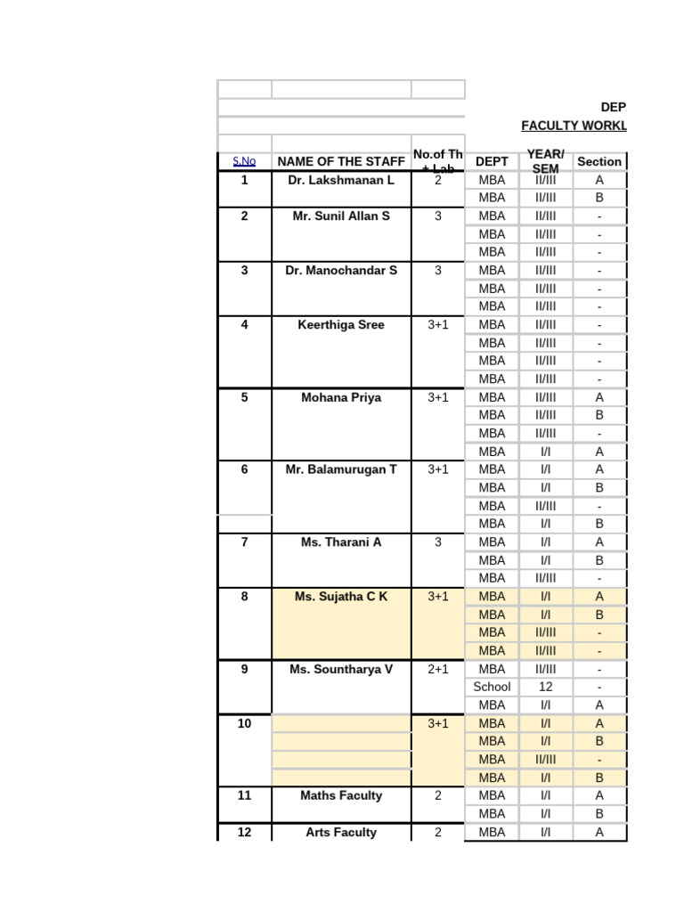 9 Ms. Sountharya V 2+1 MBA II/III -