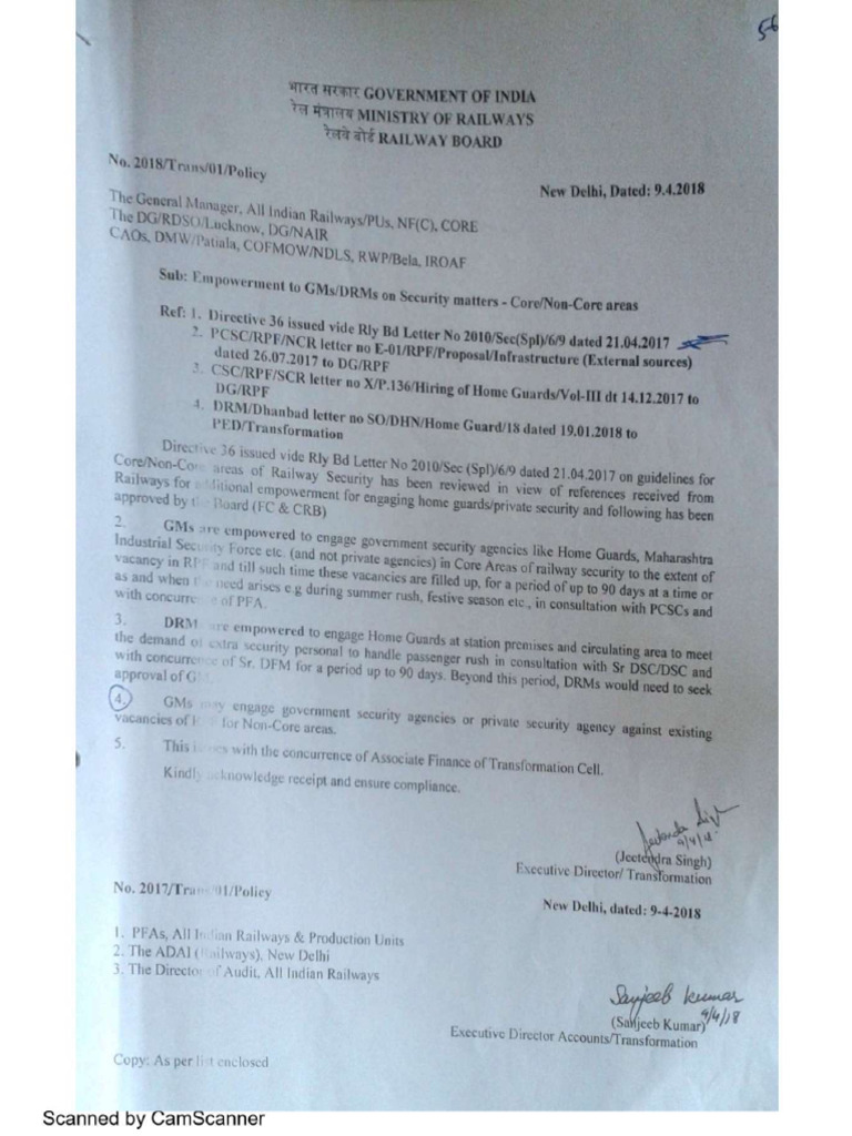 “ Railway Security and have revised core/non core areas of railway security