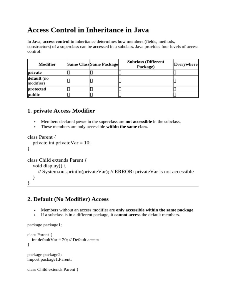 constructors) of a superclass can be accessed in a subclass. Java provides four levels of access