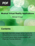 Conference, pages 3741, Miami, Florida, USA, 2004. D. Howard, S. Rimell, and A. Hunt. Force feedback gesture controlled physical modelling synthesis. In Proc. of the Conference on New Interfaces for Musical Expression (NIME03), 2003. A. Hunt, M. Wanderley, and M. Paradis. The importance of parameter mapping in electronic instrument design. In Proc. of the Conference on New Interfaces for Musical Expression (NIME02), 2002. URL [Link] proceedings/paper/[Link]. M. Kaltenbrunner, G. Geiger, and S. Jord`. Dynamic a patches for live musical performance. In Proc. of the Conference on New Interfaces for Musical Expression (NIME04), Hamamatsu, Japan, 2004. C. Nichols. The vbow: Development of a virtual violin bow. In Proc. of the Conference on New Interfaces for Musical Expression (NIME02). NIME, 2002. S. OModhrain. Playing By Feel: Incorporating Haptic Feedback into Computer-Based Musical Instruments. PhD thesis, Stanford University, 2000. URL http: //[Link]/~sile/[Link]. E. Raskob. Sound shell. URL [Link] J. Sarlo. joystick pd object. URL [Link] T. Schouten. Pure Data Packet (pdp). URL [Link] M. E. Sharon. The stranglophone: Enhancing expressiveness in live electronic music. In Proc. of the Conference on New Interfaces for Musical Expression (NIME04), Hamamatsu, Japan, 2004. H.-C. Steiner. [ifeel] object for Pd, a. URL [Link] H.-C. Steiner. [linuxevent] object for Pd, b. URL [Link] B. Verplank, M. Gurevich, and M. Mathews. The plank: Designing a simple haptic controller. In Proc. of the Conference on New Interfaces for Musical Expression (NIME02), 2002. R. Vertegaal. An evaluation of input devices for timbre space navigation. Masters thesis, Department of Computing, University of Bradford, 1994. URL [Link] [Link]. M. Wright, A. Freed, A. Lee, T. Madden, and A. Momeni. Managing complexity with explicit mapping of gestures to sound control with osc managing complexity with explicit mapping of gestures to sound control with osc. In Proc., International Computer Music Conference (ICMC), 2001.