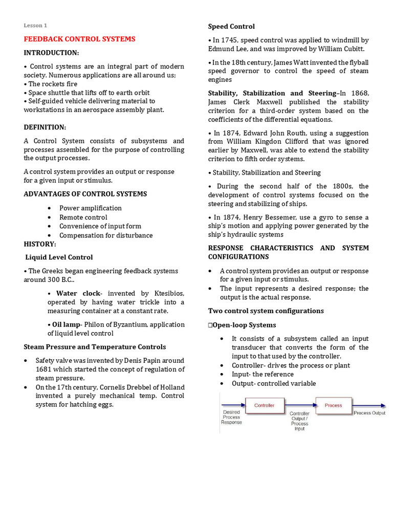 • The Greeks began engineering feedback systems • A control system provides an output or response