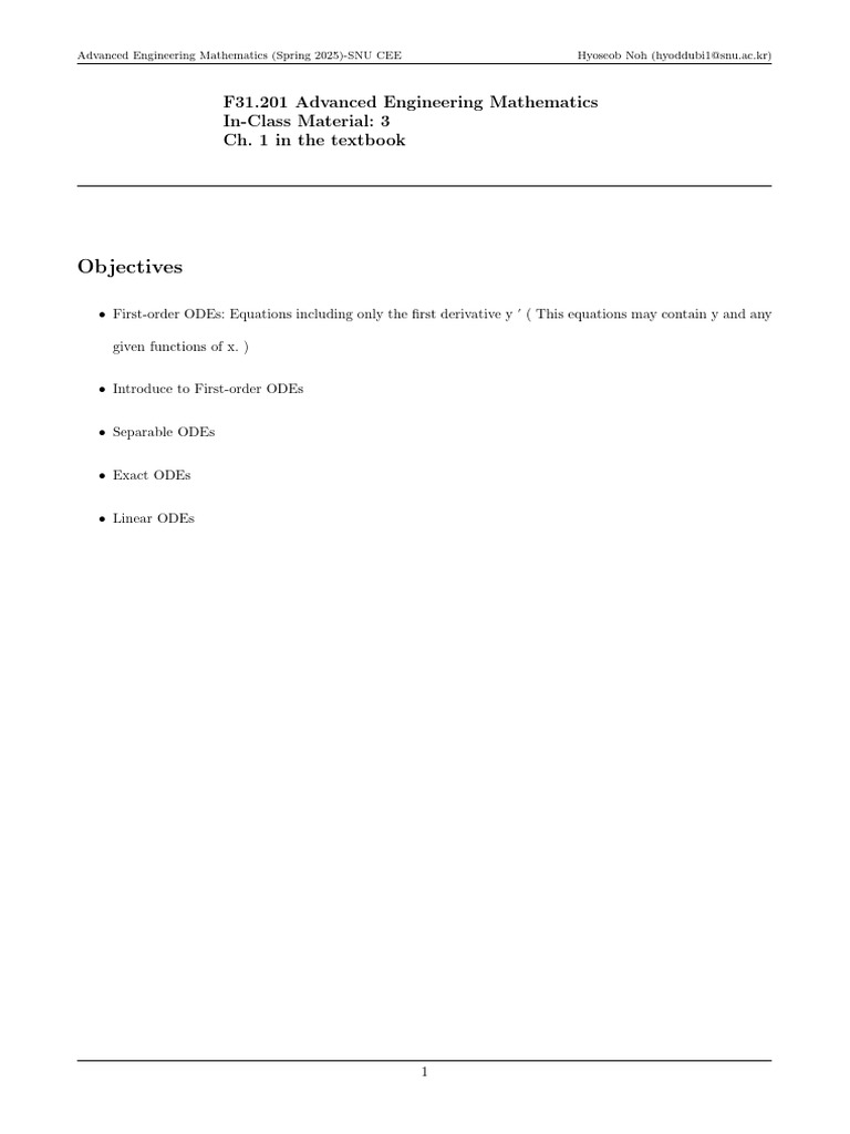 Advanced Engineering Mathematics (Spring 2025)-SNU CEE Hyoseob Noh (hyoddubi1@[Link])