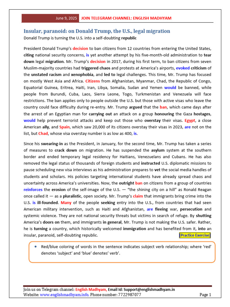 Red/blue coloring of words in the sentence indicates subject verb relationship; where ‘red’