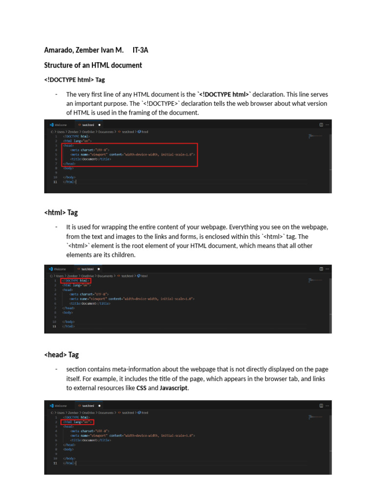 - The very first line of any HTML document is the `<!DOCTYPE html>` declaration. This line serves