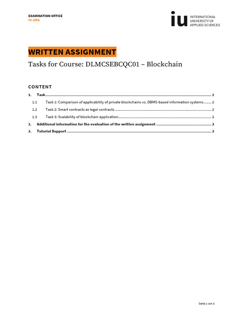 Please take note that IU Internationale Hochschule GmbH holds the copyright to the examination tasks. We