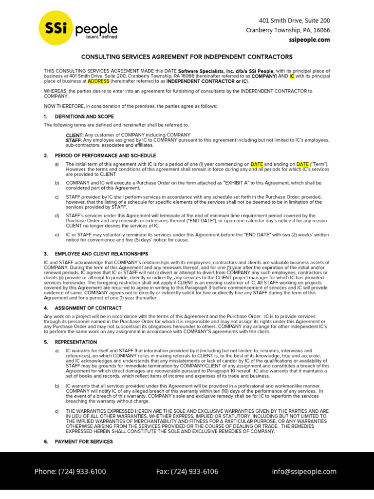 THIS CONSULTING SERVICES AGREEMENT MADE this DATE Software Specialists, Inc. d/b/a SSi People, with its principal place of