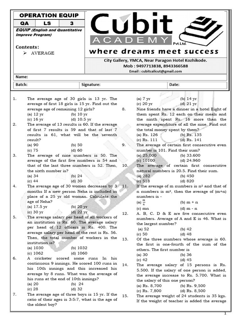 1. The average age of 30 girls is 13 yr. The (a) 7 yr (b) 14 yr