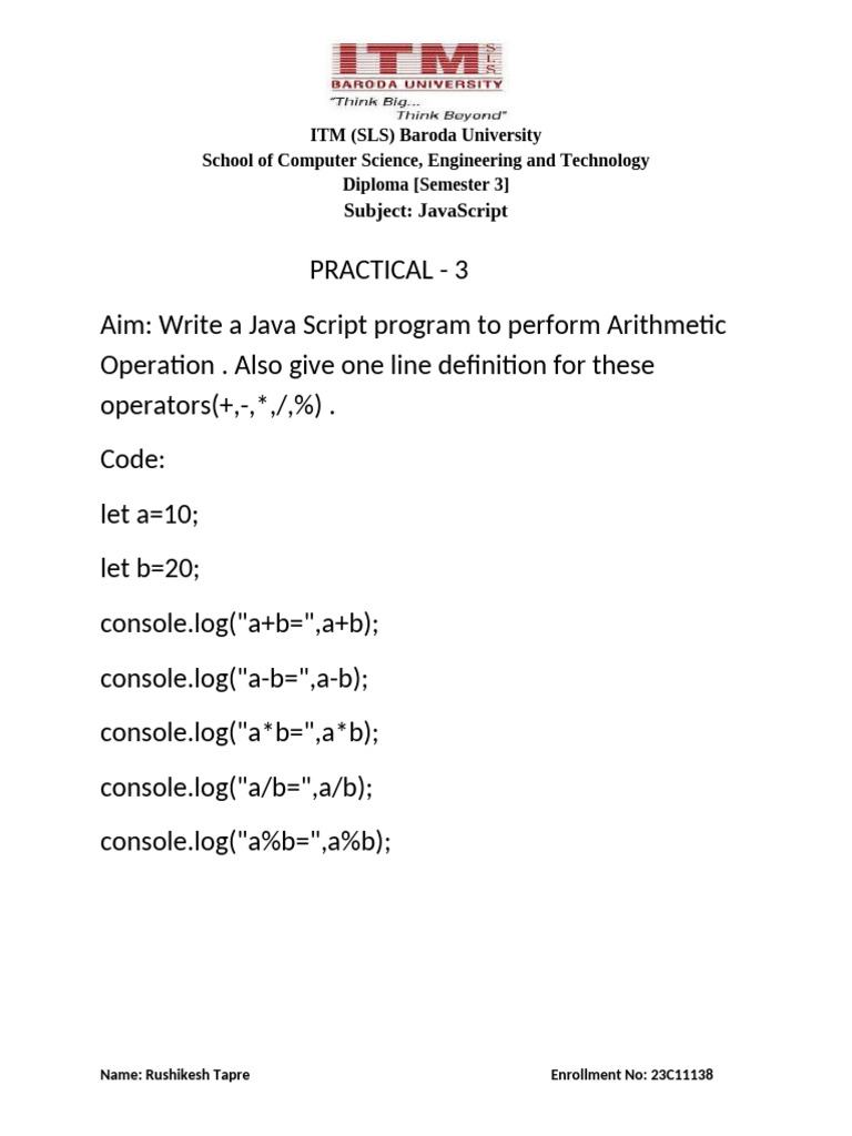 Aim: Write a Java Script program to perform Arithmetic