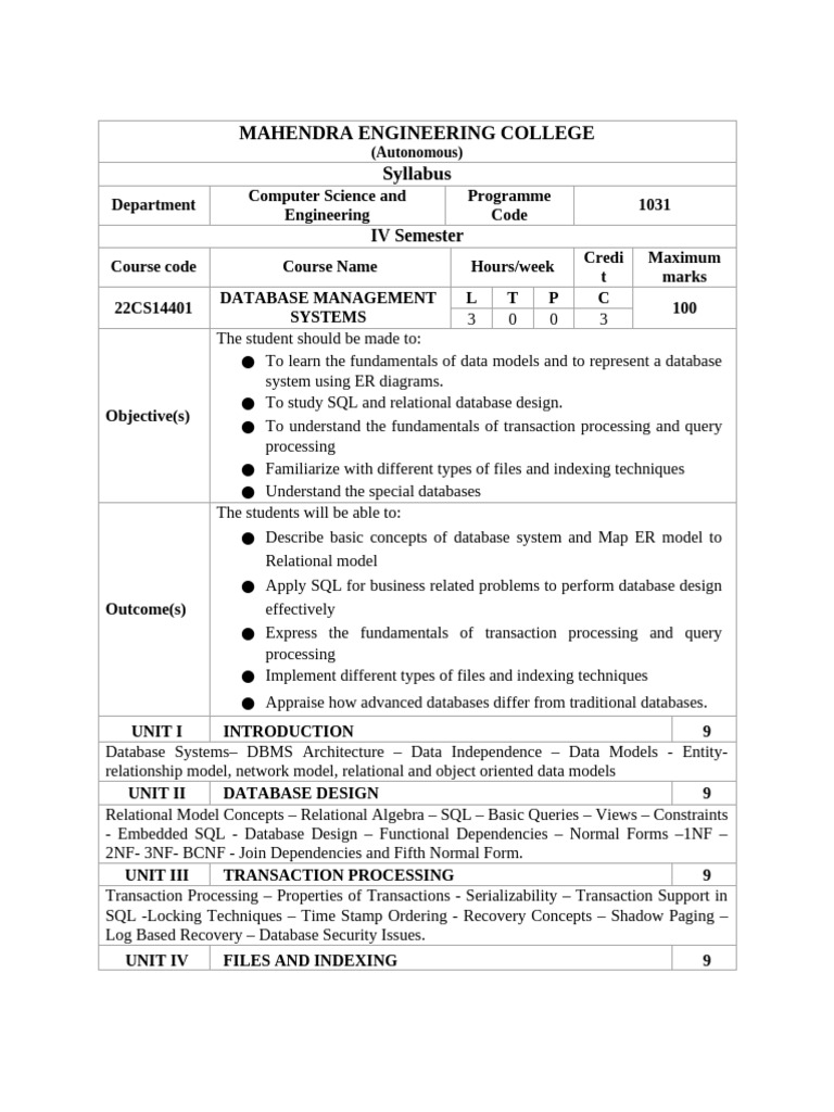 DATABASE MANAGEMENT L T P C