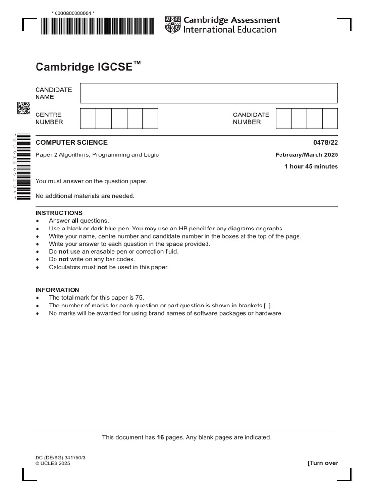 Cambridge IGCSE: Computer Science 0478/22