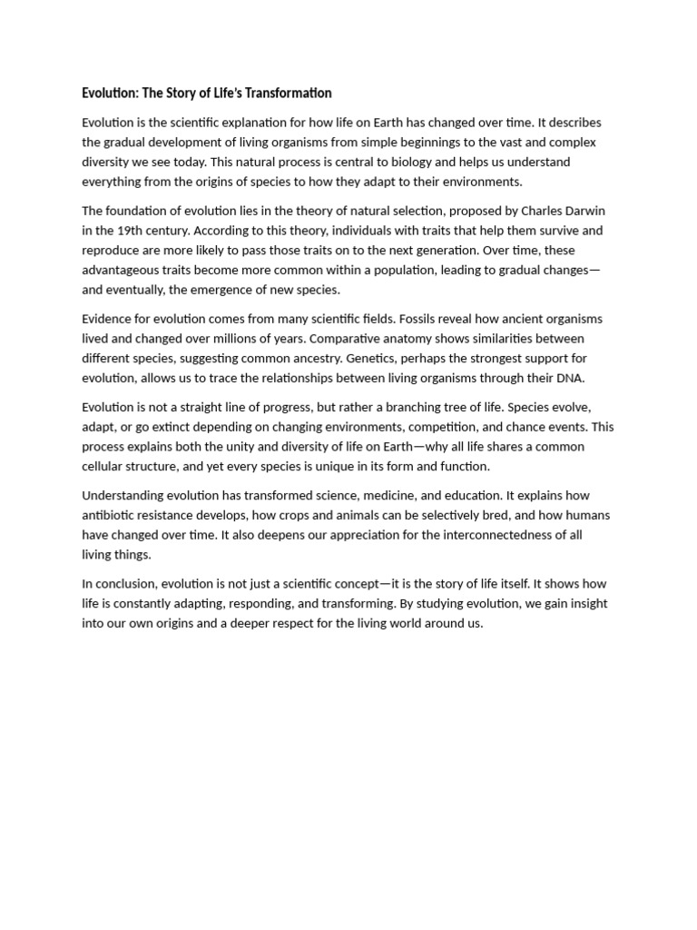 In conclusion, evolution is not just a scientific concept—it is the story of life itself. It shows how