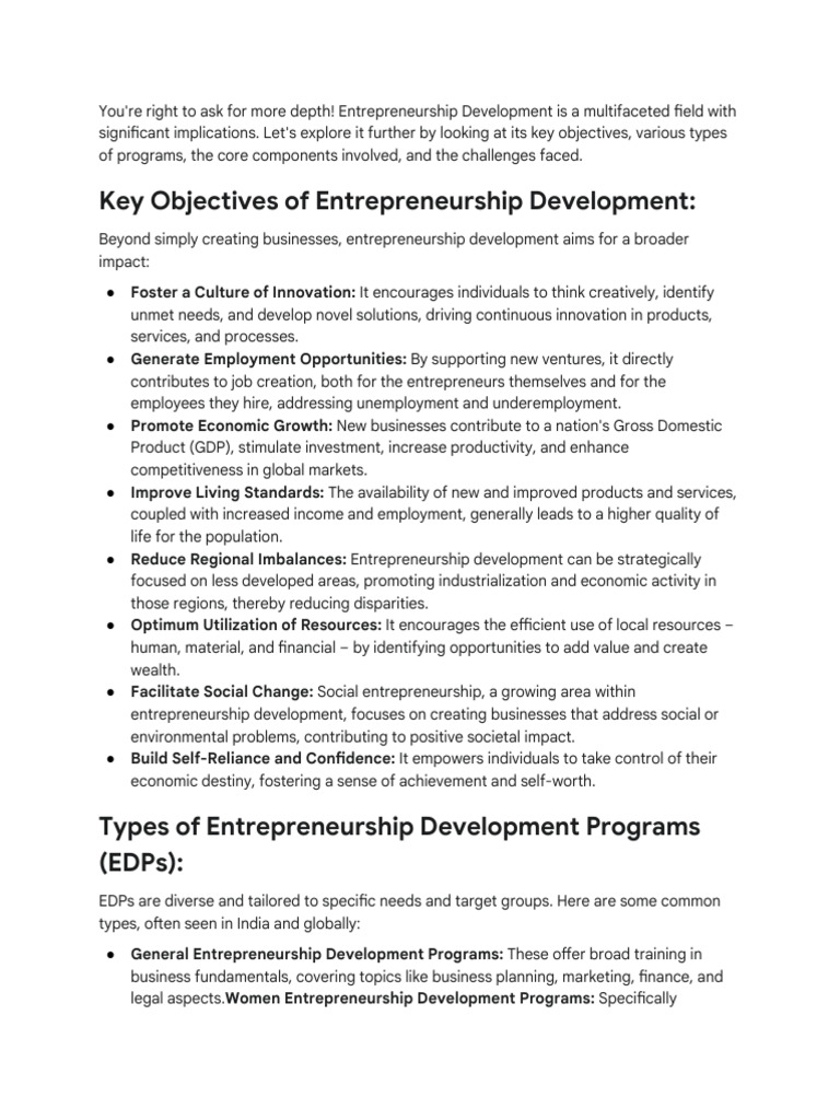 Beyond simply creating businesses, entrepreneurship development aims for a broader