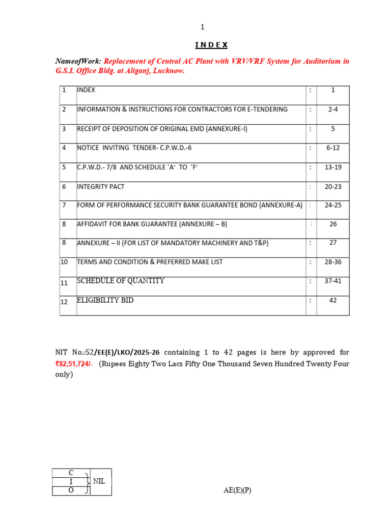 Name of Work:- Replacement of Central AC Plant with VRV/VRF System for Auditorium in G.S.I. Office Bldg. at Aliganj, Lucknow.
