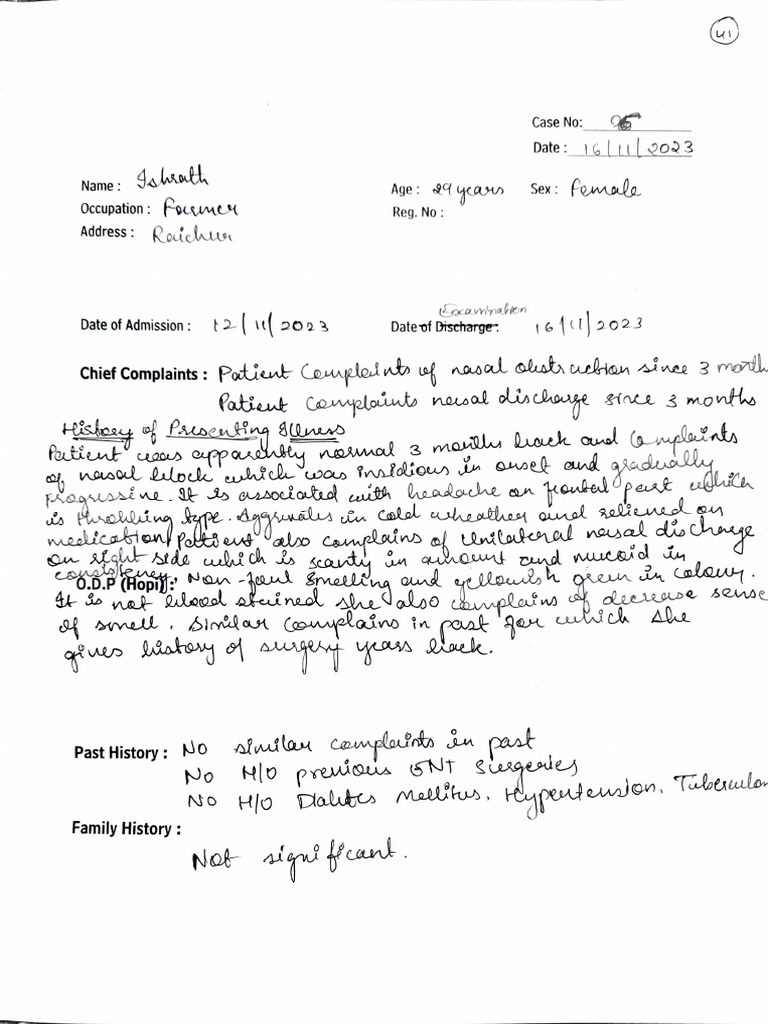 Chief Complaints : Podieut Comelod nto f nasal olst uelian siee 3 mord.