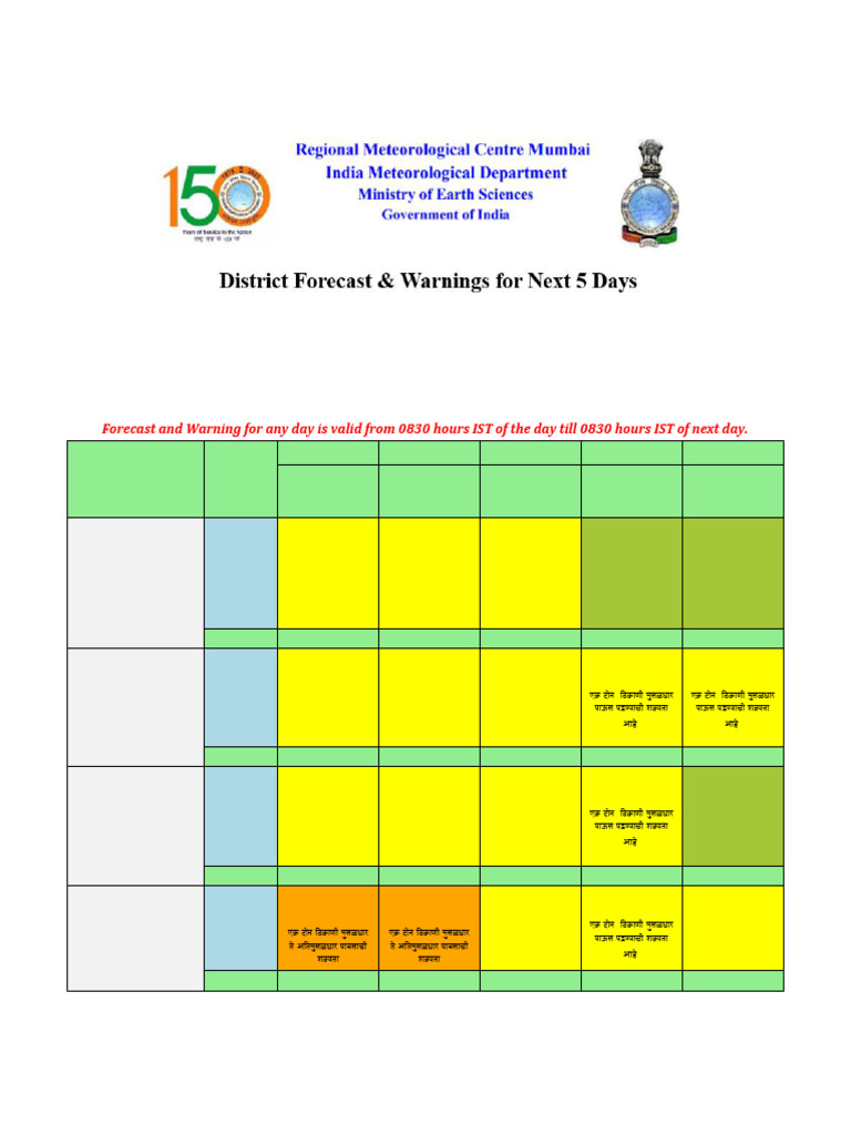 Forecast and Warning for any day is valid from 0830 hours IST of the day till 0830 hours IST of next day.