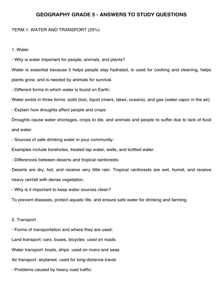 GEOGRAPHY GRADE 5 - ANSWERS TO STUDY QUESTIONS