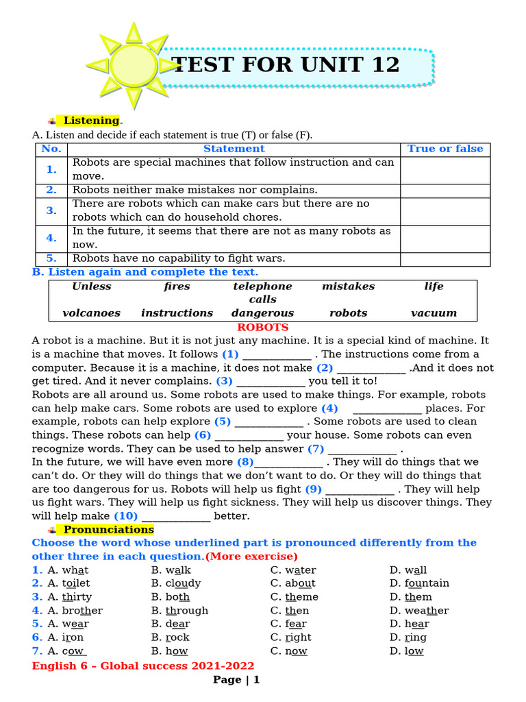 are too dangerous for us. Robots will help us fight (9) _____________ . They will help