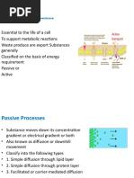 Passive transport is a process by which molecules move from areas of high concentration to low concentration without the use of cellular energy. It relies on the concentration gradient and includes processes such as simple diffusion, facilitated diffusion, and osmosis. In contrast, active transport requires energy, typically derived from ATP, to move substances across the cell membrane against their concentration gradient, from areas of low concentration to high concentration. Active transport involves specific carrier proteins and is essential for maintaining concentration gradients of ions across cell membranes .