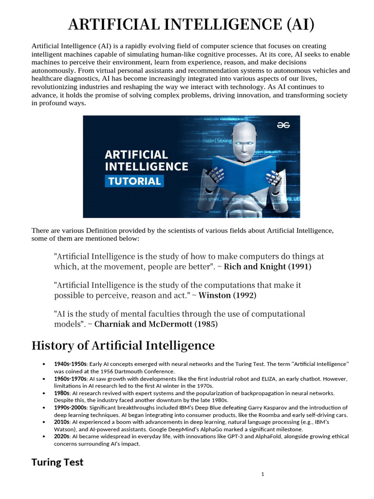 Artificial Intelligence (AI) is a rapidly evolving field of computer science that focuses on creating