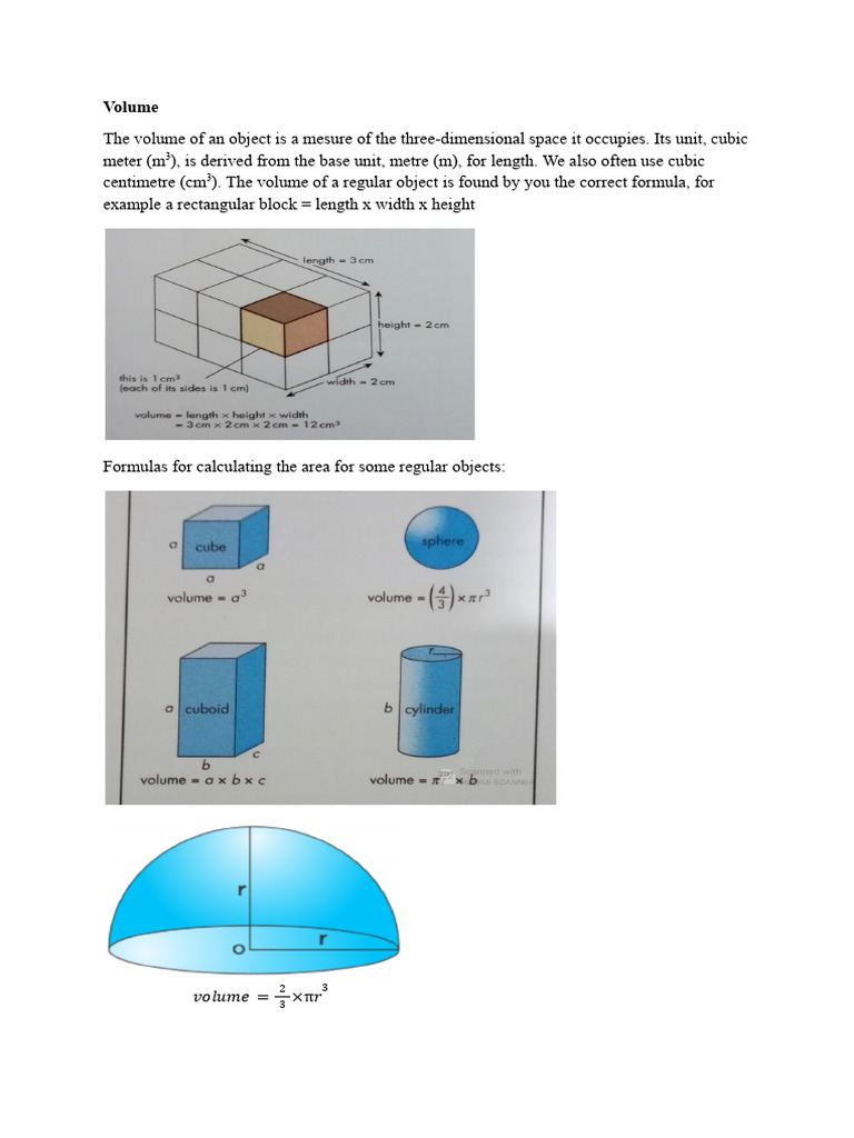 centimetre (cm3). The volume of a regular object is found by you the correct formula, for