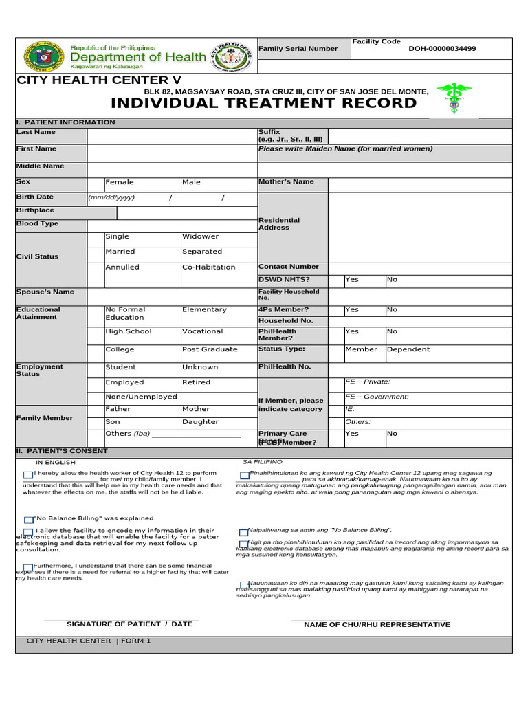 CITY HEALTH CENTER | FORM 1