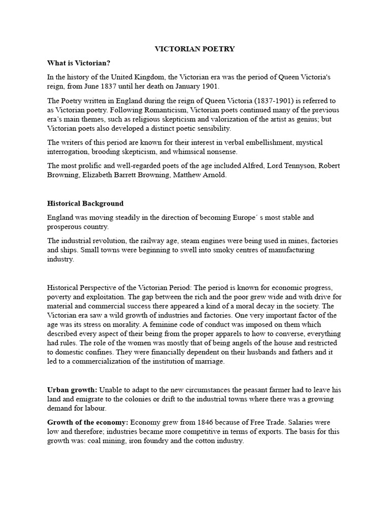 and music. Although the Victorian Poetry was quite different from that of the preceding era,